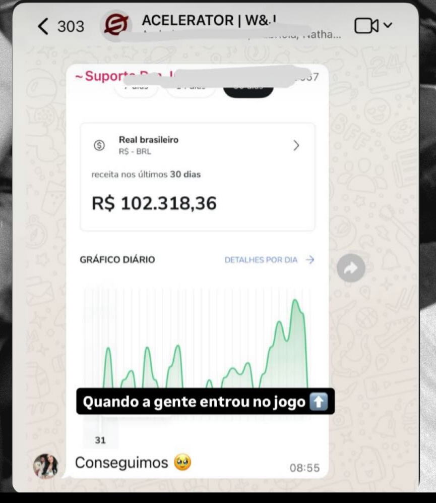 • Resultados apresentados por alunos são reais, porém individuais — variam conforme dedicação, estratégia, execução e contexto; não constituem promessa nem garantia de ganhos, faturamento ou qualquer resultado específico.